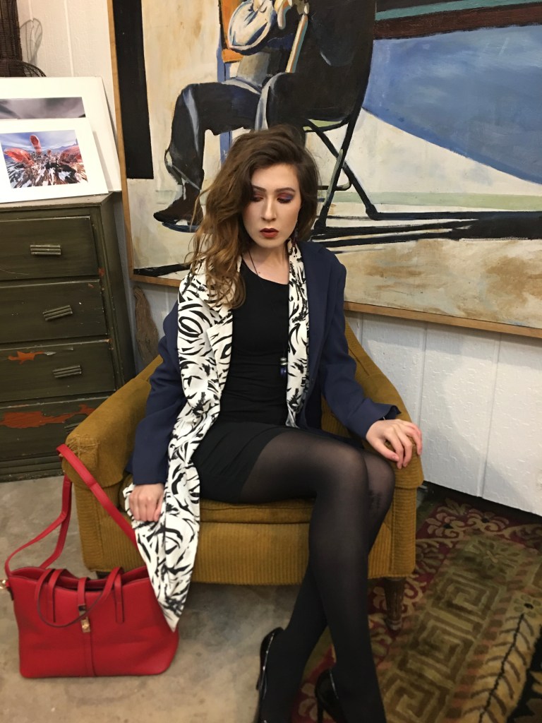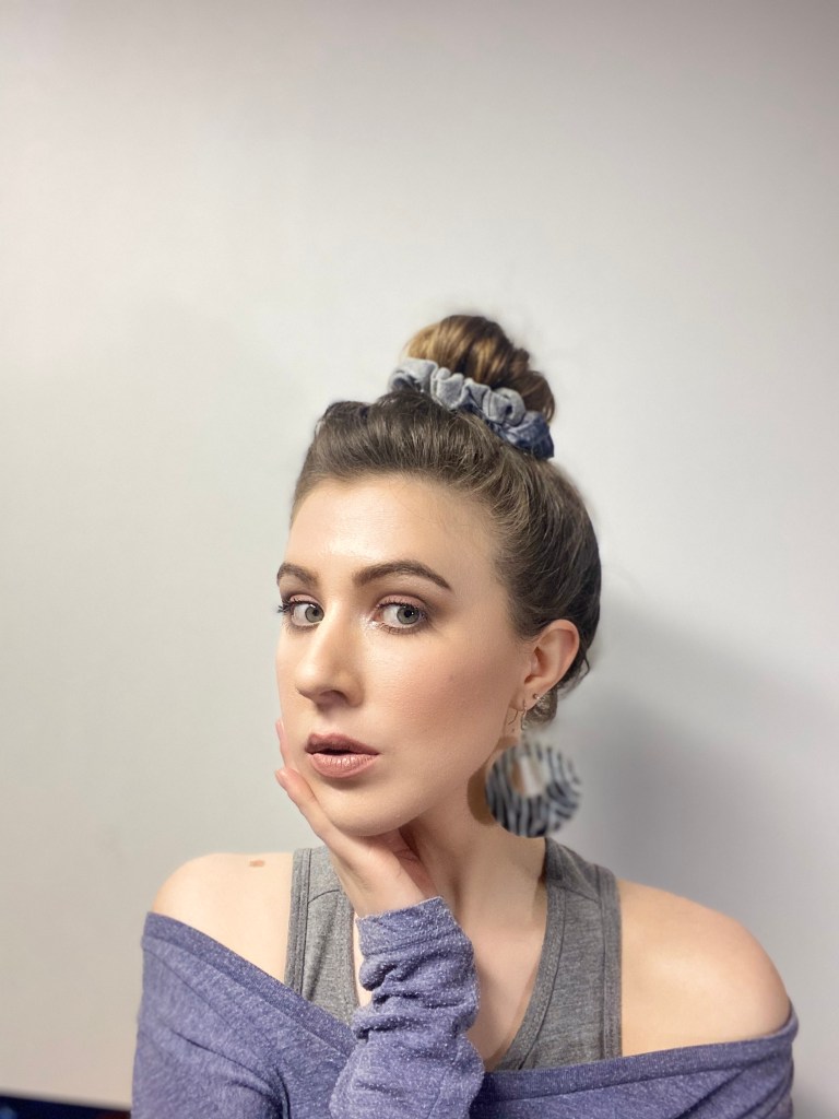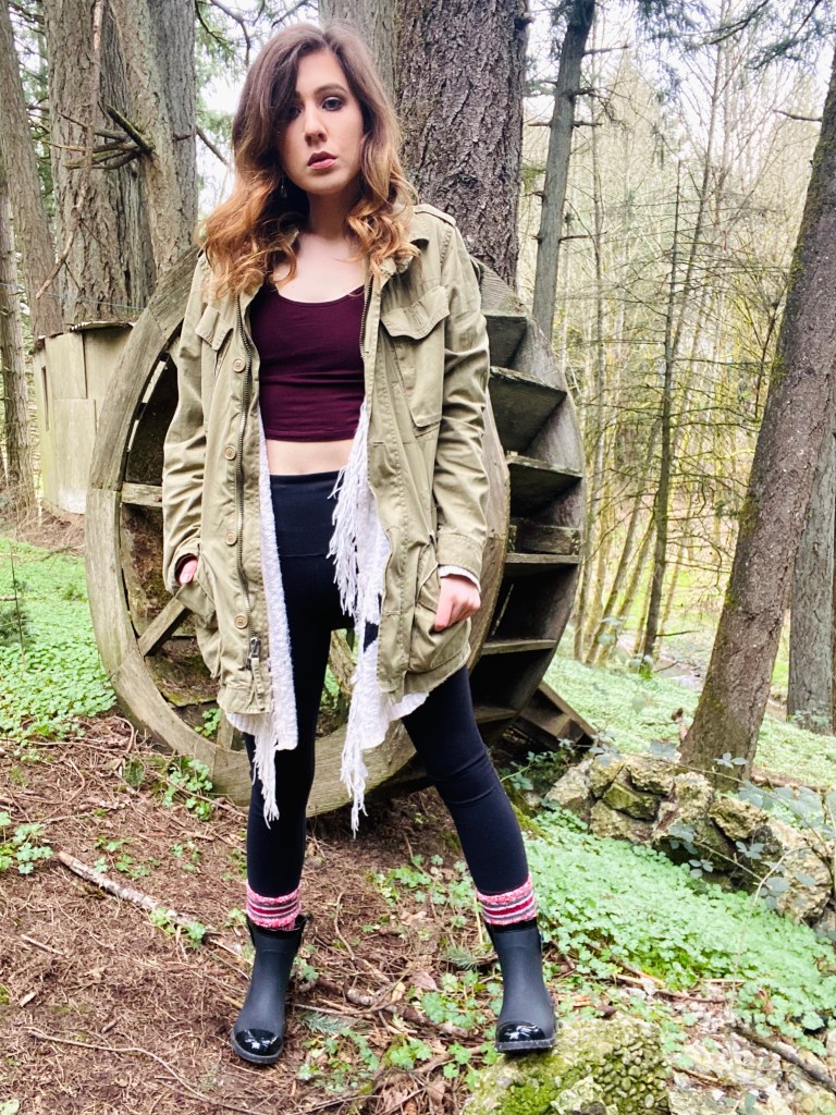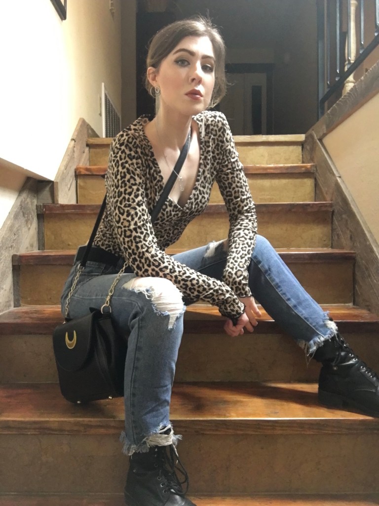 The shirt I chose for this snugly ensemble brings out my inner child by sporting a sparkly pink unicorn! Is there anything better? I love unicorns and sparkles, and really anything fantasy related. For me, this shirt makes me feel warm and fuzzy on the inside and the outside. I also love the muted pinky-purple color of it, and the heather grey on the upper part of the shirt. My pants, which are jogger types sweats, which are also heathered, but in black. I love this shirt and pants combo because they both have similar color schemes. The black cuffs on the sleeves of the shirt match the black of the sweats, and the light pink sides of the pants match the color of the unicorn on the shirt. I like that these colors are light and sort of pastel but don’t necessarily remind me of Easter eggs or marshmallow peeps. It’s a simple outfit that’s easy to move in and will be comfortable throughout the day spent at my house. If I’m feeling really snugly I’ll add some fluffy socks but for today they weren’t necessary. If I was going to go out somewhere to run and errand or something, I’d simply grab my favorite black and white Fabletics sneakers, and a black coat and be able to run out the door easily.